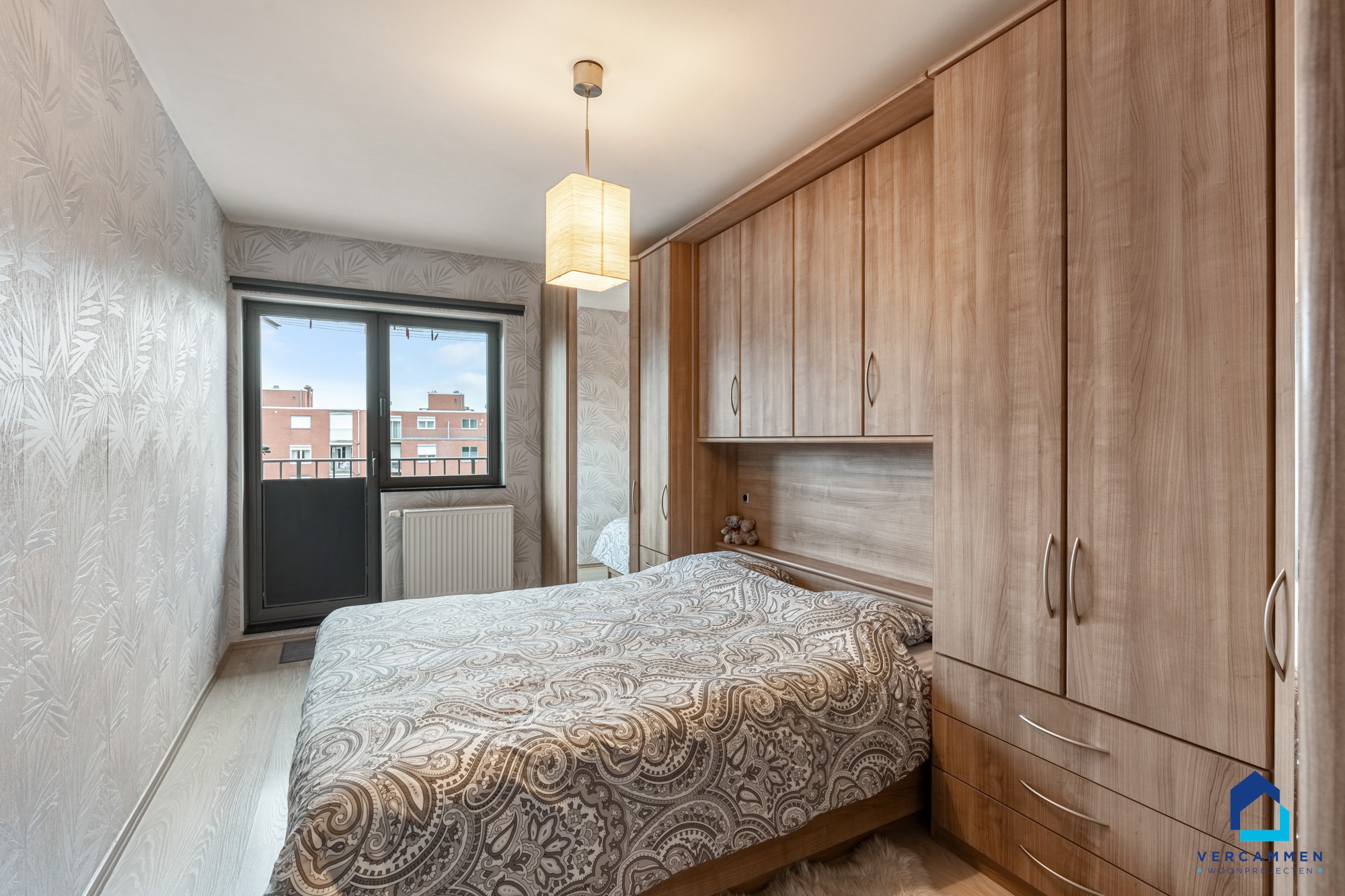 - 2de verdiep: via de inkomhal komt u binnen in de woonkamer met open keuken, uitgerust met combi-oven, spoelbak, keramische kookplaat, dampkap, vaatwasser en frigo. Dankzij de open indeling geniet u van een aangename leefruimte met natuurlijke lichtinval. Vanuit de woonkamer heeft u rechtstreeks toegang tot het terras. Aansluitend bevindt zich een praktische berging, bereikbaar via de keuken. Verder beschikt het appartement over een nachthal, een apart toilet en een badkamer voorzien van bad, douche en badkamermeubel met enkele spoelbak. De drie slaapkamers bieden voldoende ruimte; één van de slaapkamers heeft bovendien toegang tot een balkon.